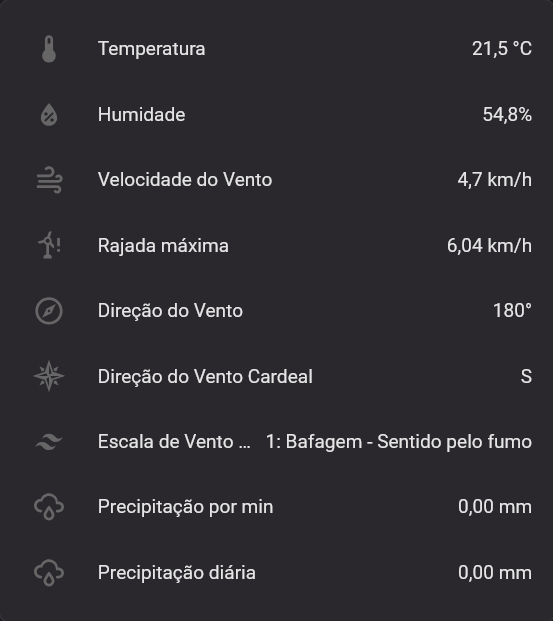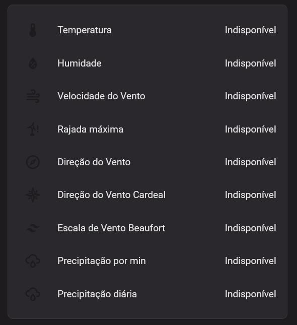 Também o parametro da rajáda de vento máxima não está perfeito. Na leitura da velocidade do vento ao ter a filtragem de valores, o resultado é mais consistente, mas pode não ser a velocidade máxima.