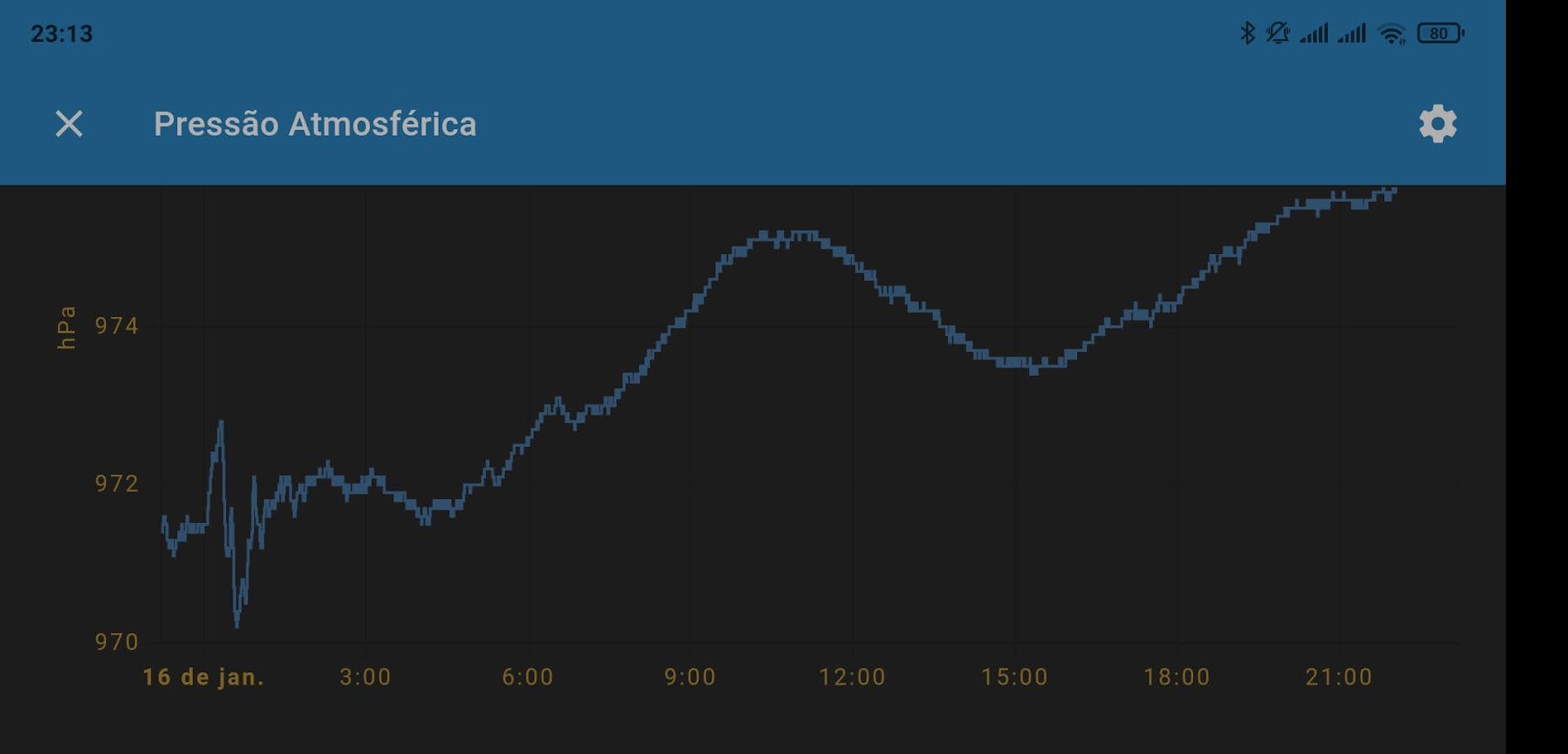 Com uns calculos, ainda podemos adicionar o Ponto de Orvalho e a Humidade Absoluta. Com o BME280, obtemos a pressão atmosférica: