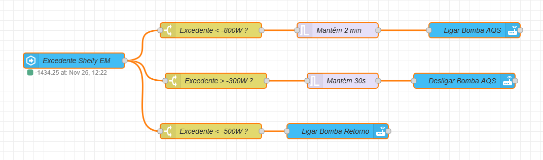 Pretendo que a minha bomba AQS ligue apenas quando tenho excedente de energia (se este se mantiver por 2 minutos, para evitar ligar e desligar constantemente)